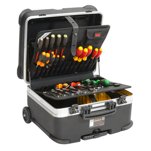 Perfect for storing hand tools, power tools, or spare parts, it offers generous internal space and smart organization solutions. Thanks to its ball-bearing wheels and integrated telescopic handle, the Rock Turtle moves effortlessly, even over uneven surfaces.